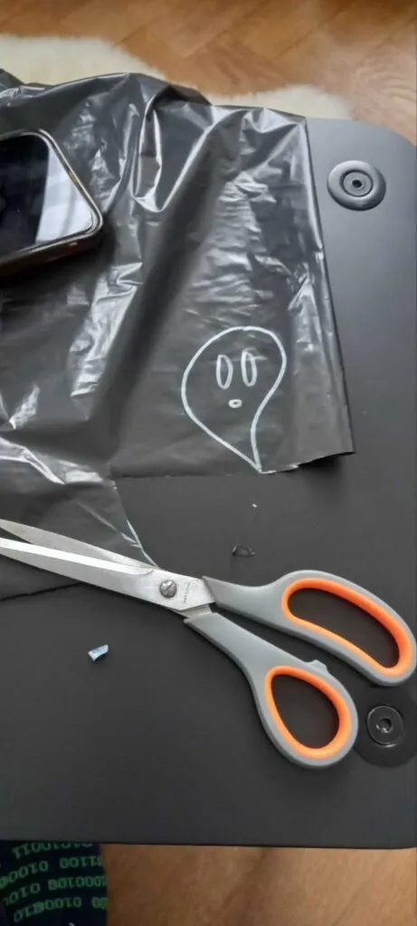 Deuxième phase : la déco d’Halloween. Après une brève inspiration Instagram (et quelques échecs critiques), on a finalement pris le coup de main. Astuce du jour : coller avec de l’eau, c’est écolo… mais ça a son caractère et ça demande un peu de patience pour que ça tienne ! Un peu comme quand on teste un nouveau snippet de code : parfois ça prend au premier essai. Et parfois il faut ajuster quelques détails pour que tout s’imbrique parfaitement. 😬